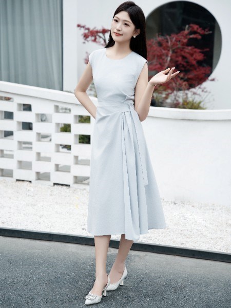 灰蓝色调清透时尚,无袖设计解放双臂,圆领弧度温润得体。休闲版型,气质利落洒脱,侧边的系带设计,行走时翩跹轻扬,智感魅力无声流淌。吹散都市的燥热与浮华,通勤日搭一双乐福鞋,干练中透着松弛。或是约会时配细带凉鞋与金属耳饰,清冷的女神,心中永远的白月光。