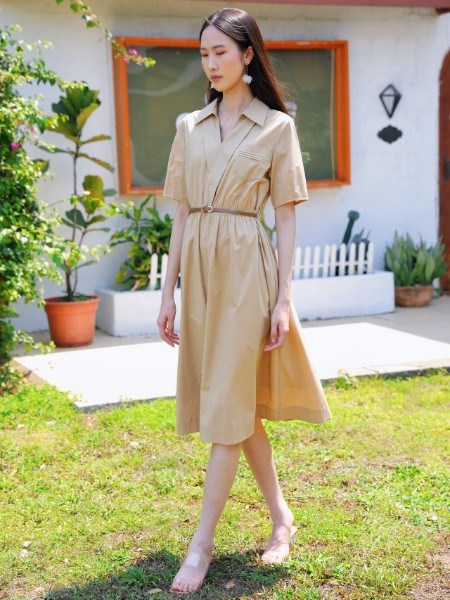 简约卡其色翻领连衣裙,散发着文艺复古的自然气息。卡其色的色调,温暖而柔和,仿佛是岁月的沉淀,让人感受到一种宁静与安详。翻领的设计,增添了几分干练与知性,展现都市女性的优雅气质。棉麻面料细腻而富有质感,贴合肌肤,炎炎夏日里感受到清爽与舒适。风格文艺复古,搭配一双简约的凉鞋和一个复古的包包,游走都市,感受时光的流转。